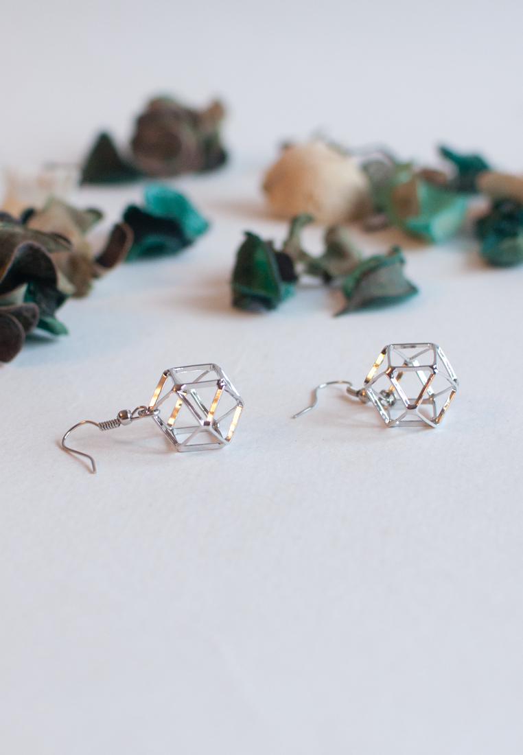 Geometric Silver Drop Earrings by sanwaitsai. Silvery metal geometric drops make a darling pair of drop earrings perfect for your feminine side.
