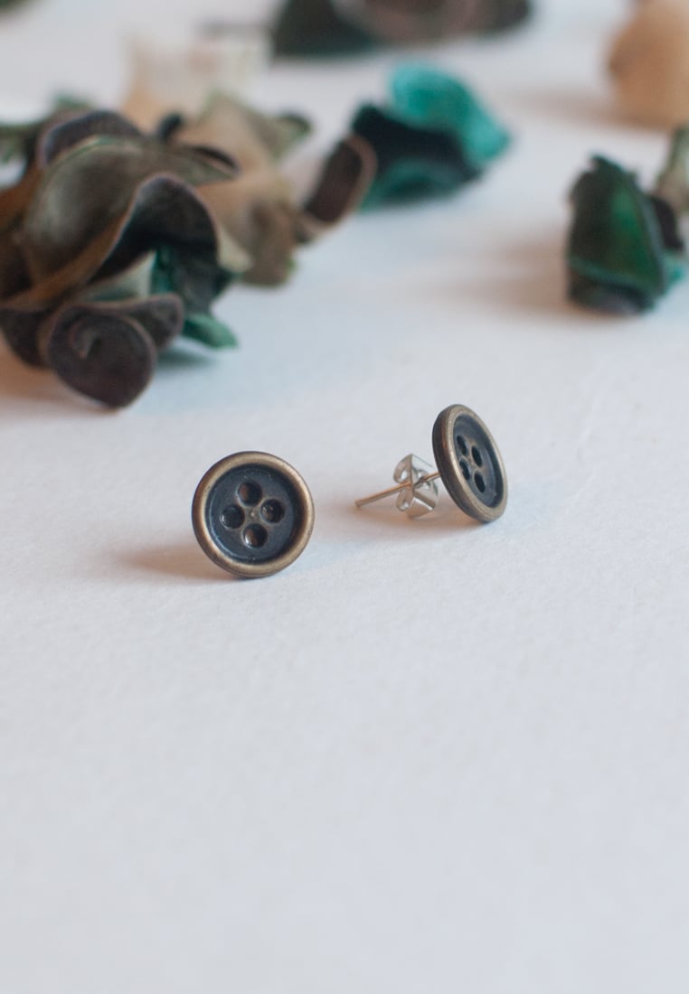 Vintage Button Post Back Earrings by sanwaitsai. This pair of earrings has a striking vintage look.
