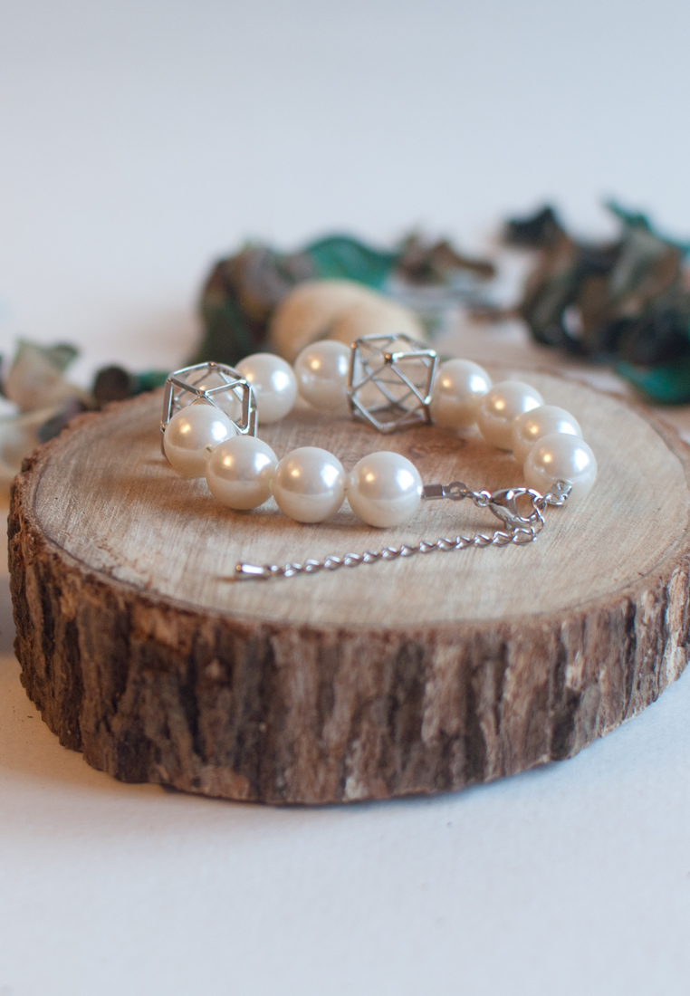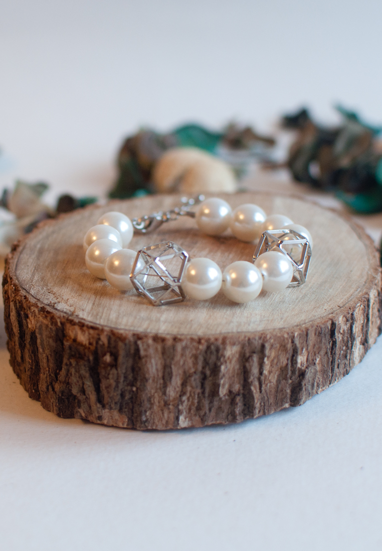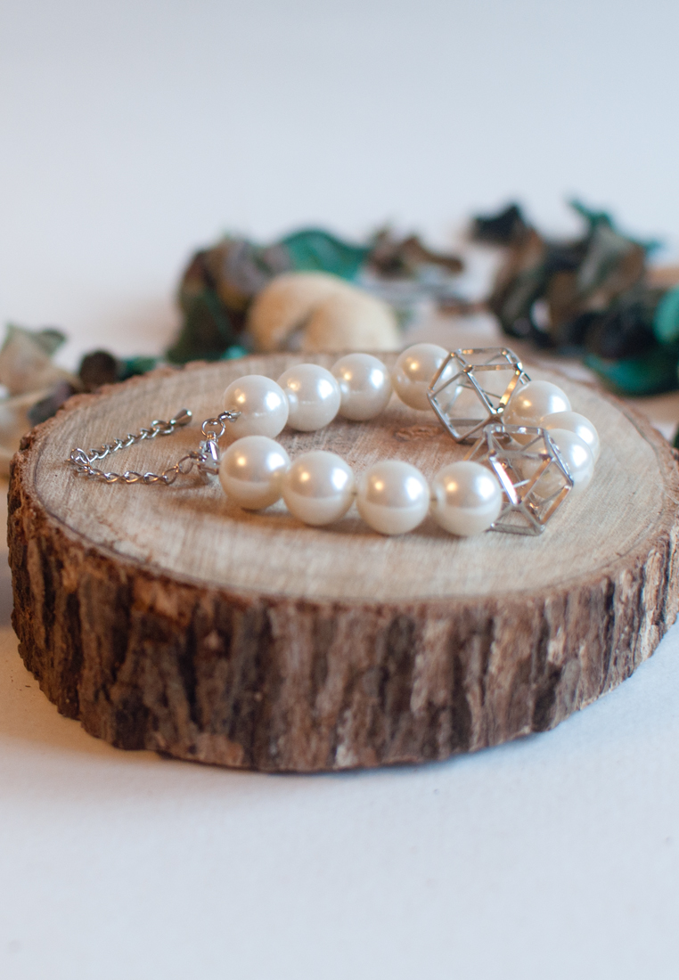 Simple and natural design lights up the slender geometric pendant on a delicate bracelet.