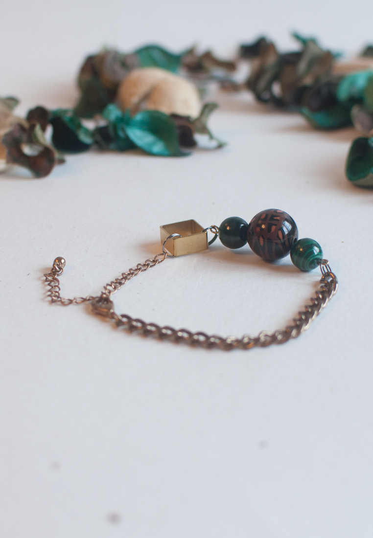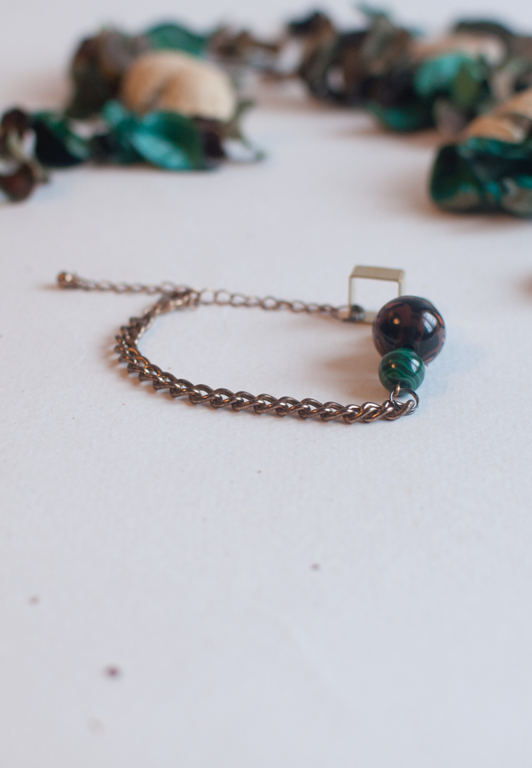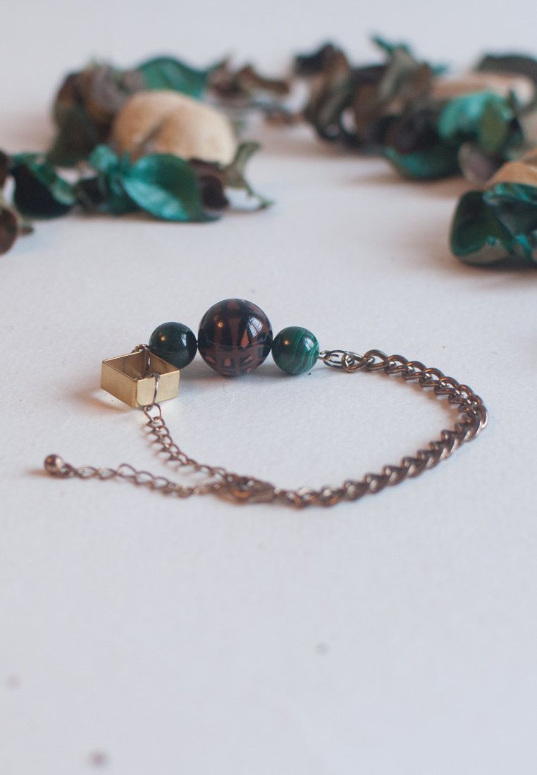 Malachite Beaded Gold Metal Bracelet by sanwaitsai.