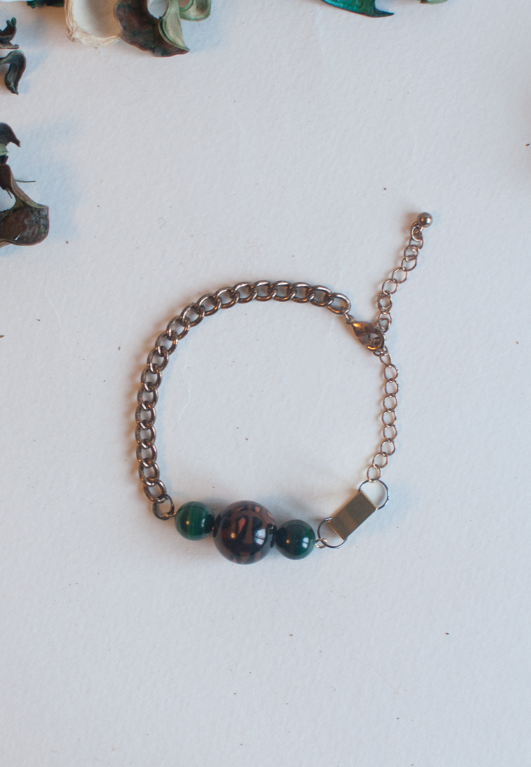 Malachite Green Beaded Gold Metal Bracelet BL0814