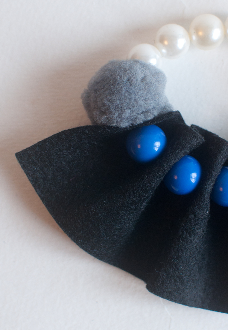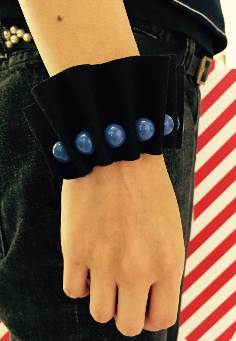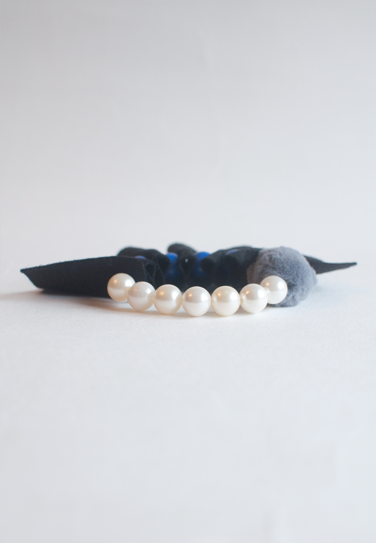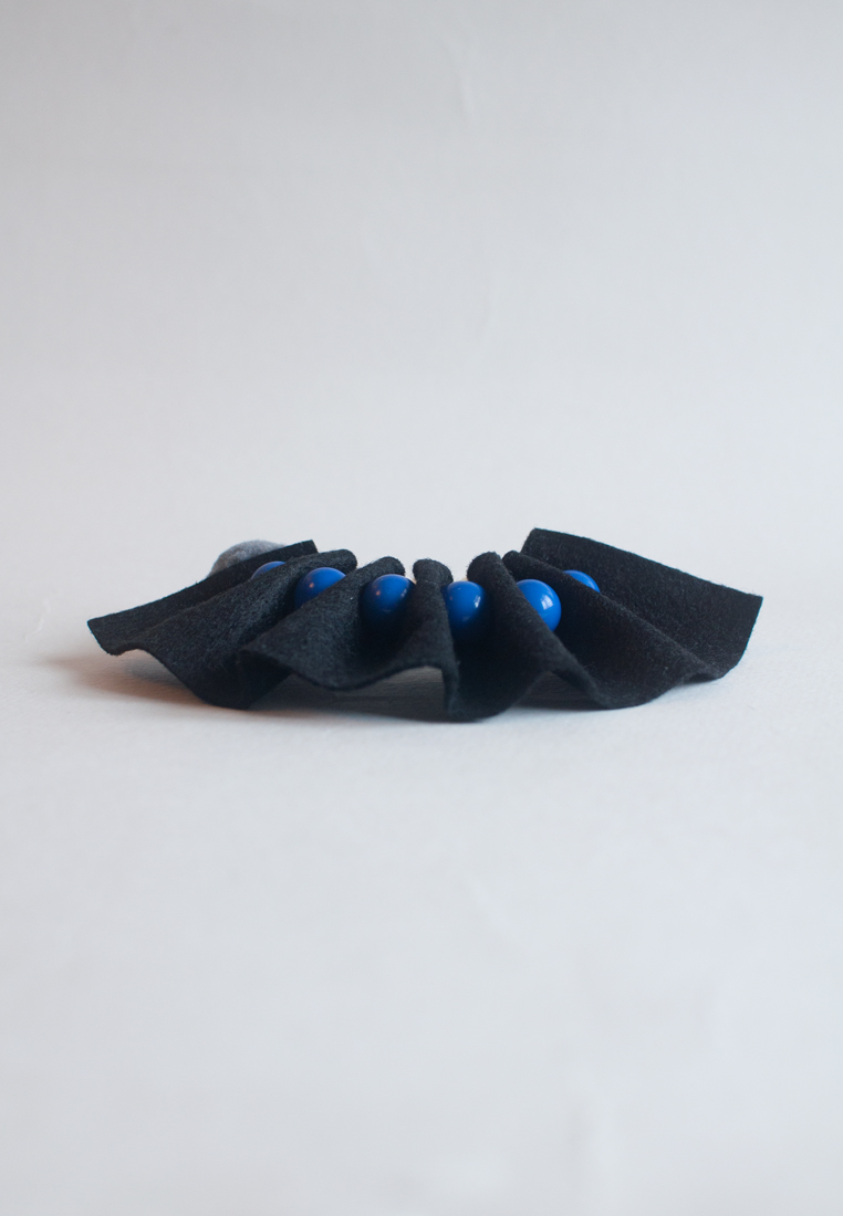Blue Resin Beads Black Felt Stretch Bracelet BL0903