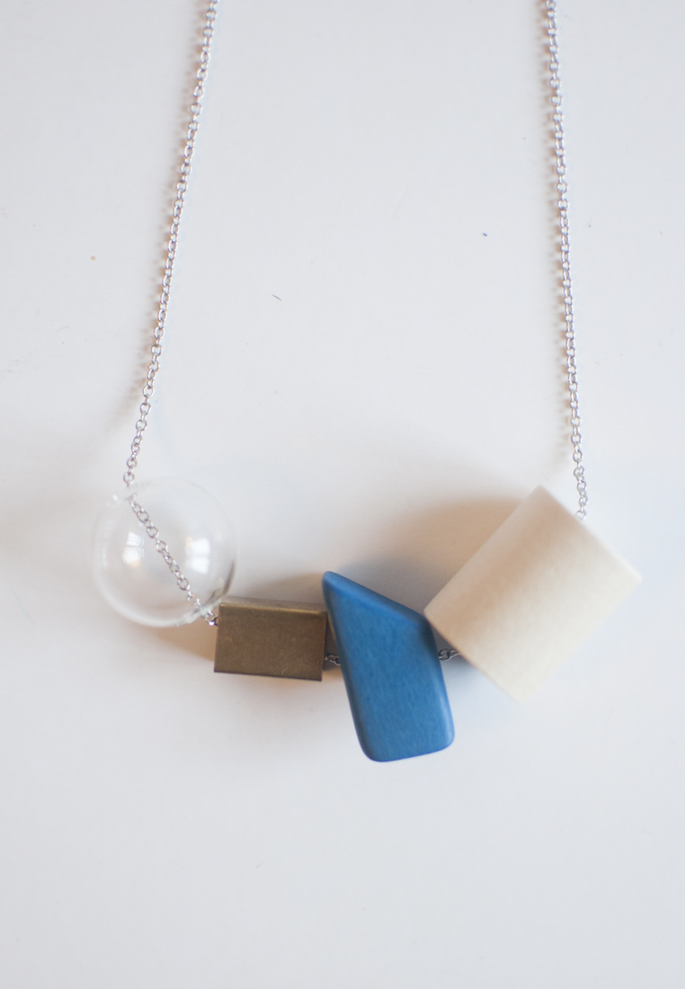 Blue Wood Glass Necklace NL0944