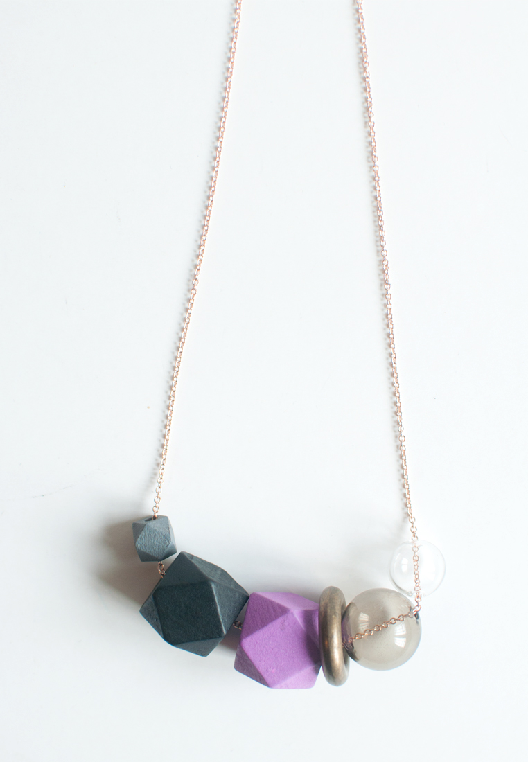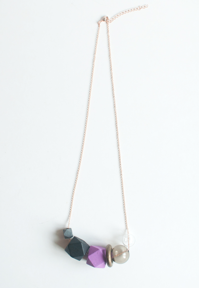 Length: 22" Extender: 3" Weight: 10g Lobster clasp closure Wood / glass / rose gold plated