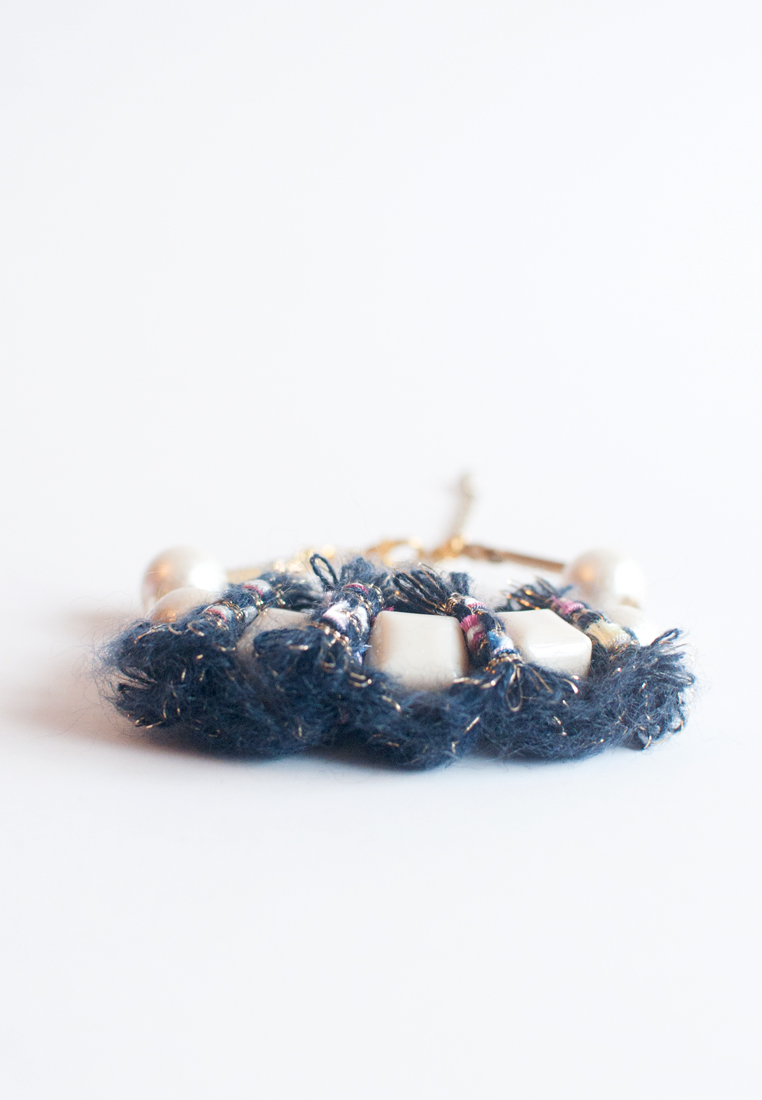 Stylish colors combination - black and white - performs a comfortable and full of personal style handmade bracelet.