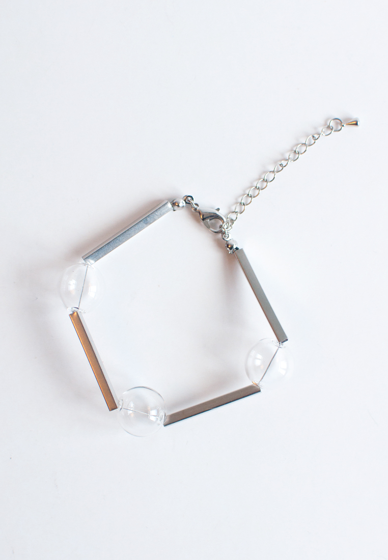 Stylish metal bar and glass beads perform a comfortable and full of personal style handmade bracelet.