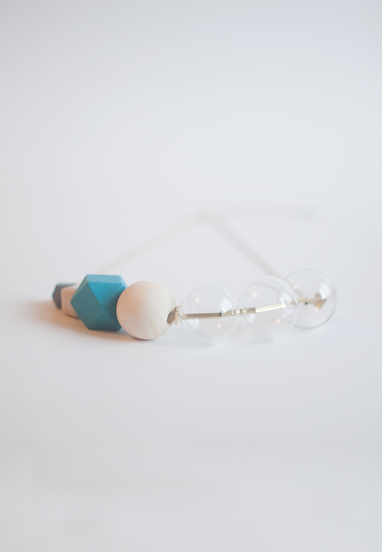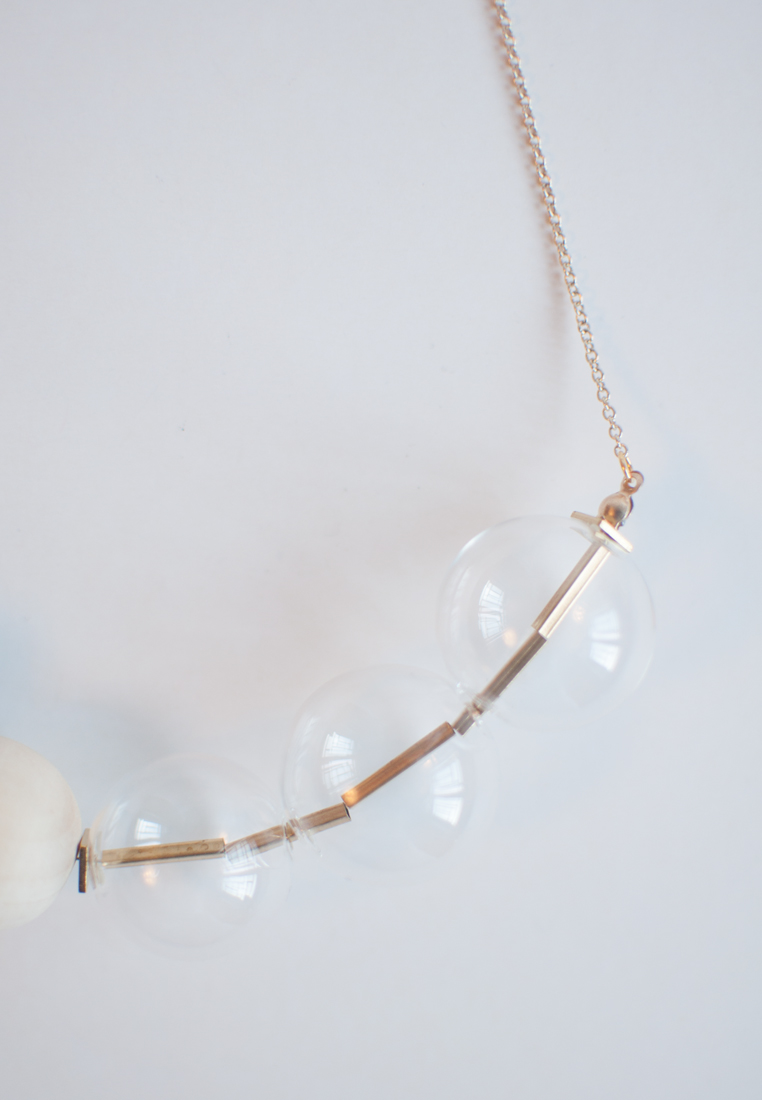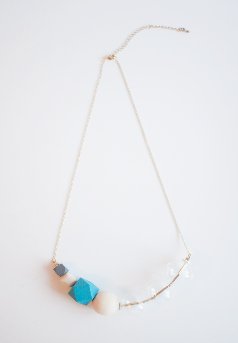 A stylish handcrafted glass necklace offers an impressive style with different shapes of different materials.