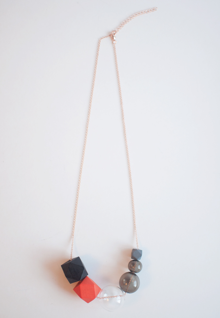 Length: 22" Extender: 3" Weight: 19g Lobster clasp closure Wood / glass / rose gold plated