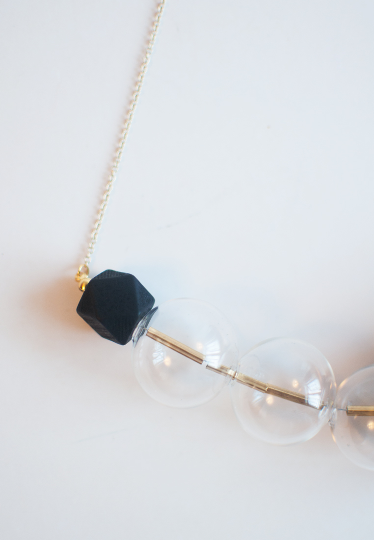 A stylish handcrafted glass necklace offers an impressive style with different shapes of different materials.
