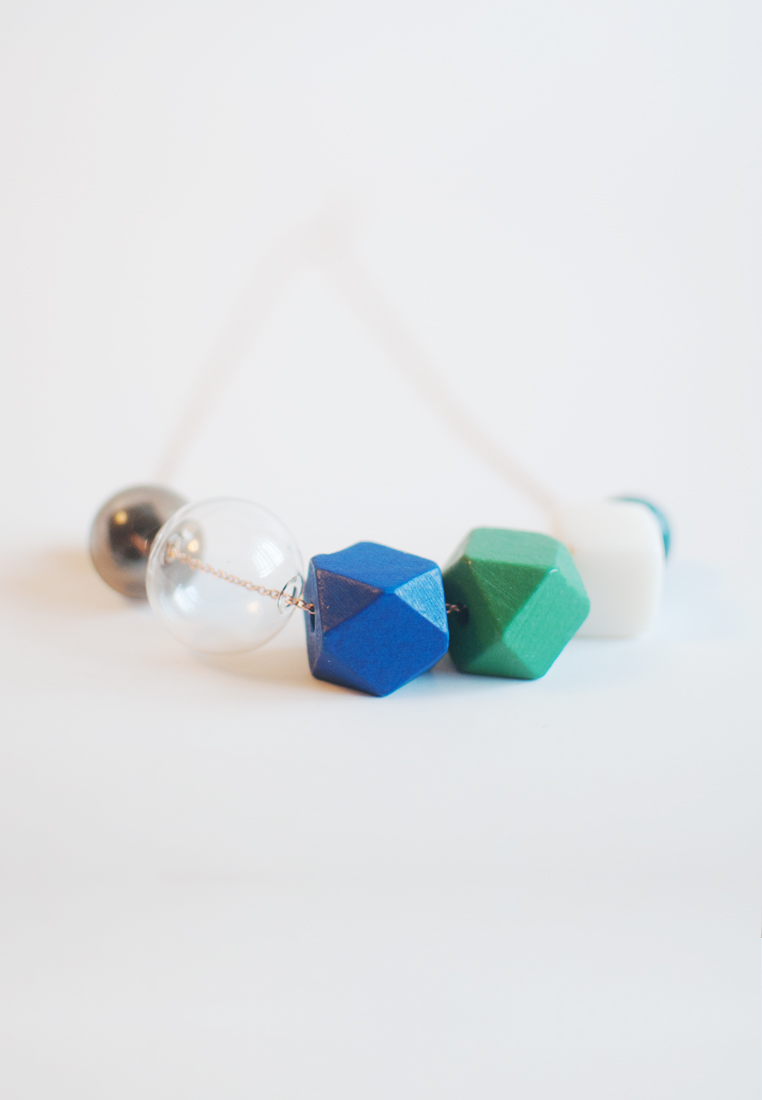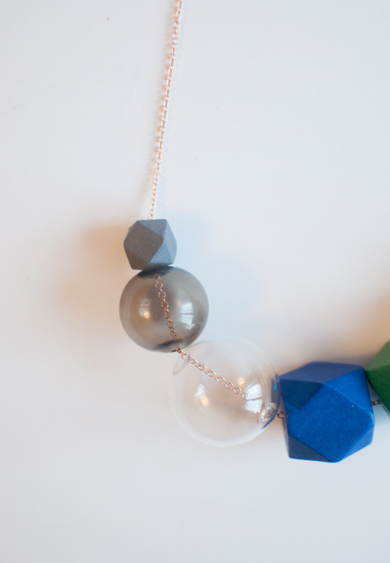 A stylish handcrafted glass necklace offers an impressive style with different shapes of different materials.