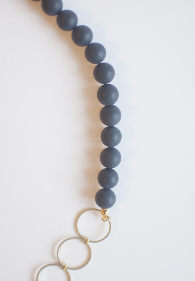 Length: 20" Extender: 3" Weight: 40g Lobster clasp closure Onyx matte / metal / wood / gold plated